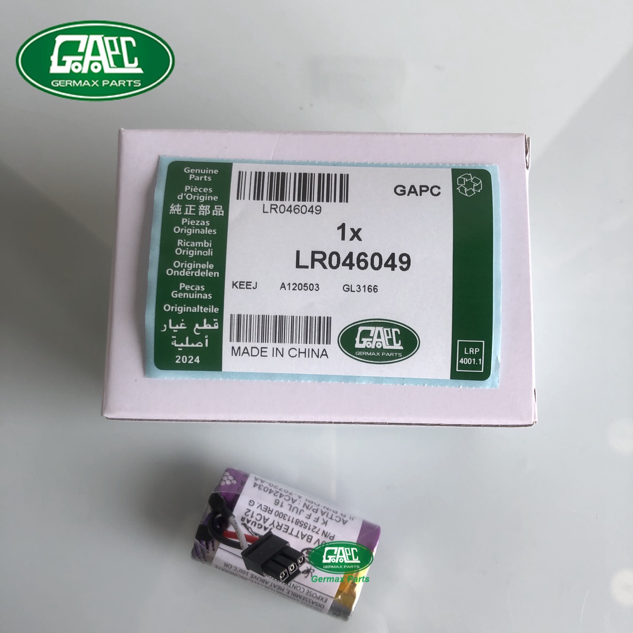 Germax Parts produce and export all Land Rover & Jaguar OEM spare parts to the world, such as the Telematics Battery OEM part number LR046049 LR112188 T4N2591 fit for Land Rover, if you need more Land Rover spare parts, please feel free to contact us.