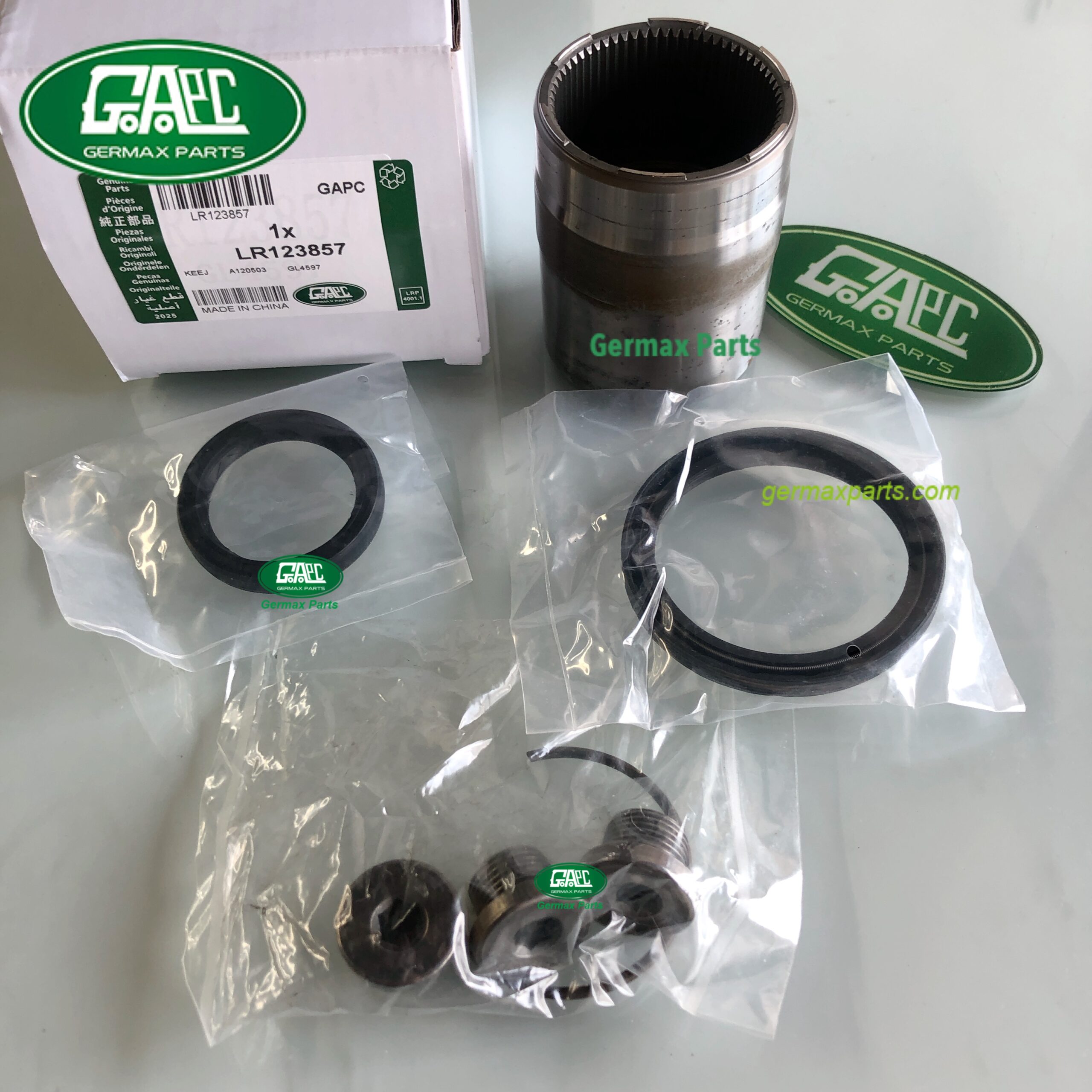 Germax Parts produce and export all Land Rover & Jaguar OEM spare parts to the world, such as the Transmission Output Shaft Sleeve Kits OEM part number LR123857 LR086159 LR049901 T4A19463 fit for Land Rover Range Rover Evoque 2012- Discovery Sport 2015- New Range Rover Evoque 2019- Jaguar F-PACE 2016- E-PACE 2017-, if you need more Land Rover Range Rover Evoque 2012- Discovery Sport 2015- New Range Rover Evoque 2019- Jaguar F-PACE 2016- E-PACE 2017- spare parts, please feel free to contact us.