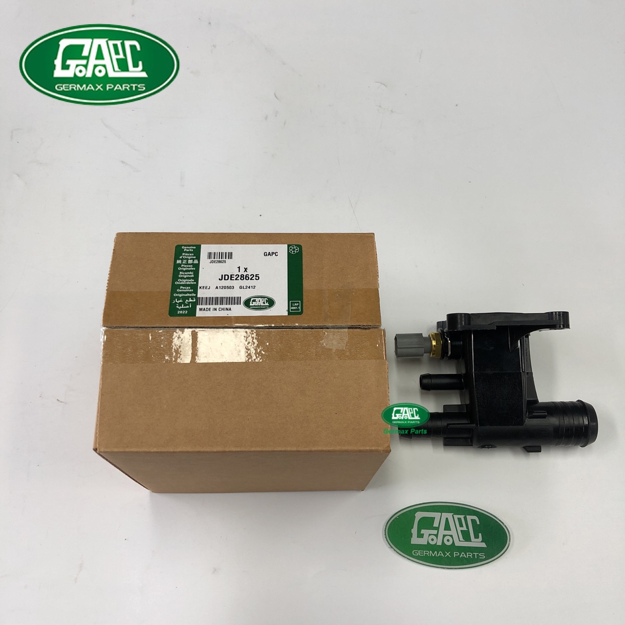 Germax Parts produce and export all Land Rover & Jaguar OEM spare parts to the world, such as the Water Outlet OEM part number is LR057501 JDE28625